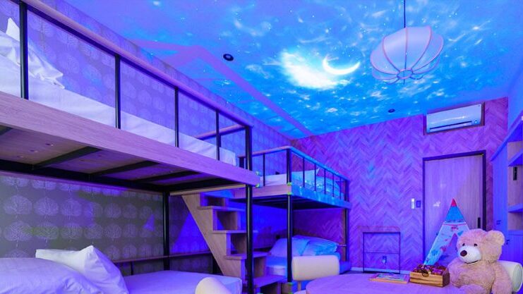 二段ベッドやテントがある遊び心いっぱいの客室で、おもちゃやプラネタリウムも備え、お子様連れの家族旅行にぴったりですね♪